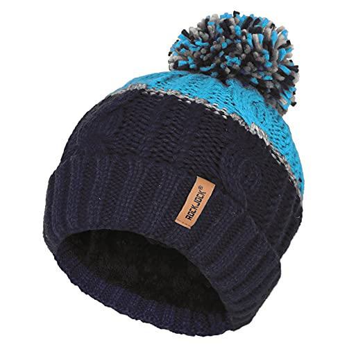 Rockjock Cappello Unisex da Donna con Pompon Invernale Caldo a Blocchi di Colore a Blocchi di Colore con Fodera in Pile Termico Accogliente