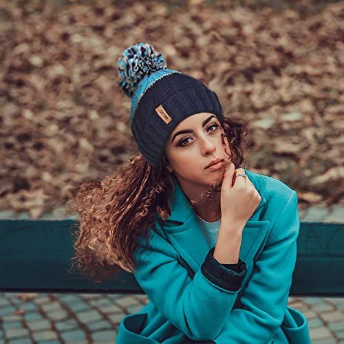 CAPPELLO CALDO ALLA MODA: un grosso cappello a blocchi di colore lavorato a maglia con eccellenti proprietà di isolamento termico. Cavo dal design tradizionale con un tocco moderno. Foderato con una morbida fodera in pile di pelliccia di orsetto R80 per proteggere dal freddo e dai venti invernali. Un grande pompon di lana completa il cappello