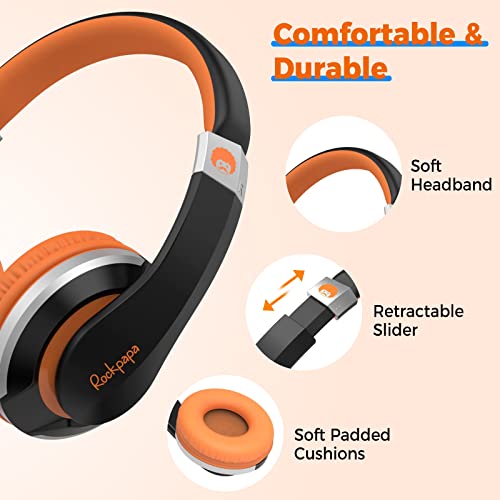 RockPapa I20 Cuffie per Bambini con Microfono, Cuffie con Filo per Bambini, Leggere e Pieghevoli, Cuffia On Ear per Didattica a Distanza/Smartphone/Tablet (Nero Arancione)