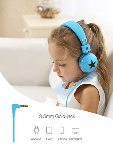 RockPapa 828 - Cuffie pieghevoli e regolabili per bambini/adulti, iPhone, iPod, iPad, smartphone, tablet, computer, DVD, colore blu