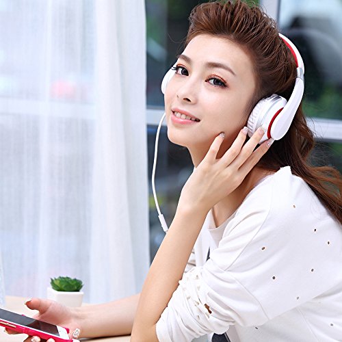 RockPapa Over Ear Cuffie Stereo Regolabili Raggruppabili con microfono per lettore MP3, MP4, CD, DVD, iPod, iPhone, iPad, PC, SmartPhones Bianco Rosso