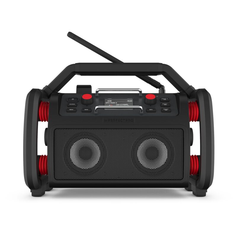 Radio ROCKPRO RP2 - Alloggiamento in plastica ABS resistente agli urti - 3 x 40 stazioni preselezionate con funzione zap - Bluetooth 4.1 con funzione vivavoce - Indicatore LED per la connessione Bluetooth - Lettore USB (MP3. WMA, FLAC, AAC, Apple Lossless, LPCM, Real Audio e WAV) - 2 altoparlanti stereo da 3″ a doppio neodimio - Alimentazione di rete (100-240 V) e 3 pile (11. 1V - 3 x 4000 mAh) - Cavo di alimentazione in gomma neoprene da 3 metri - Vano per riporre i cavi e supporto per la spina sul retro della radio - Antenna flessibile e pieghevole (tipo KDAB1) - Supporto in metallo per la protezione del display - Griglia dell'altoparlante in metallo - Protezione IP65 contro polvere e getti d'acqua.