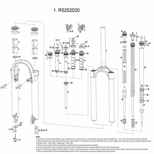 RockShox R5252020 - Gruppo Forcella, Escursione 80-115 mm, per Tora XC/Reba/Recon XC, Colore: Nero
