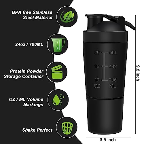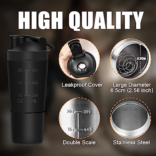 GRANDE CAPACITÀ E STOCCAGGIO DI PROTEINE: Il set shaker per proteine in acciaio inossidabile include una tazza shaker da 700 ml (la linea della bilancia arriva fino a 591 ml/20 once) e un ulteriore scomparto per la conservazione delle proteine da 200 ml. Hai sempre a portata di mano la giusta quantità di nutrimento liquido ogni volta che ne hai bisogno. Ed è utile per conservare proteine in polvere extra o condividere i tuoi frullati con il tuo partner.
