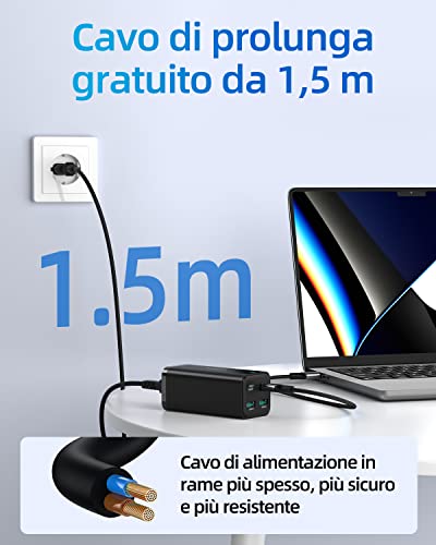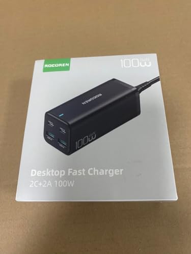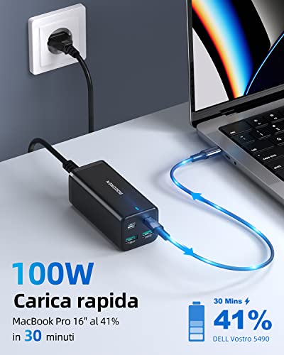 Rocoren Caricatore USB C Rapido 100W, 4 Porte GAN V Alimentatore Multiplo Type C PD3.0 QC4.0 PPS, Caricabatterie USB C Con 1.5M Cavo, Compatibile MacBook Air M2, iPhone14, iPad Pro, Samsung, Huawei