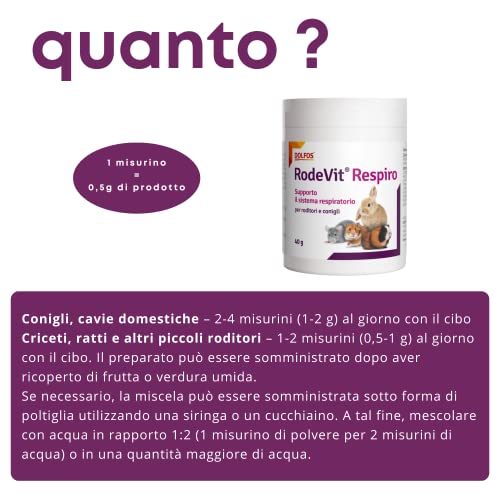 RodeVit Respiro per Conigli e dei Roditori - Supporto alle vie respiratorie - Supporto per Apparato Respiratorio - Confezione 40 grammi