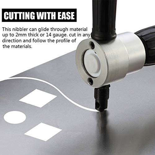DOPPIA testa in LAMIERa RODItrice-taglio posti di lavoro diventano più facili, più veloce e più sicuro con questo cutter roditore. E non vi sentirete stanchi durante il taglio. Montaggio senza sforzo in qualsiasi trapano standard. Può scivolare attraverso materiale fino a 2mm di spessore o 14 gauge..