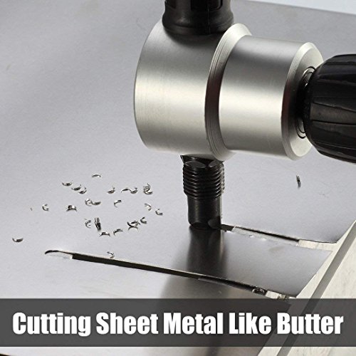 Un attrezzo potente per AIUTArlo a fare i lavori di taglio--è leggero, compatto ed elegante. Azionato da un trapano standard tra 1500-3000 RPM. Le grondaie, le sezioni del tetto o gli stampini possono essere tagliate con precisione poichè può muoversi dovunque all'interno di 360 gradi. Non importa dritto e cerchio di taglio, è sempre fare il meglio..