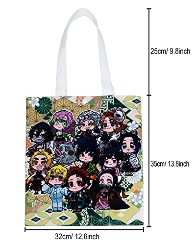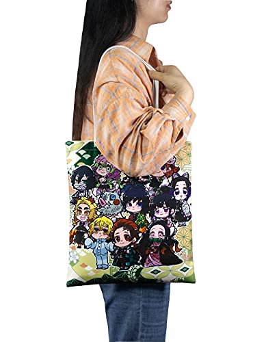 Roffatide Anime Demon Slayer Borsa a Tracolla in Tela per Ragazze Borsa per la Spesa Riutilizzabile Borsa Tote Casual Bianca