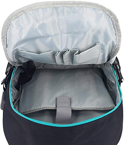 Esterno: 2 tasche con cerniera, 2 tasche laterali in rete. Interno: 2 tasche aperte, 2 portapenne, 1 tasca in rete e una tasca imbottita per laptop per laptop fino a 15,6 pollici.