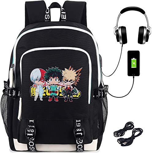 Roffatide Anime My Hero Academia Zaino Zaino stampato Borsa da college Zaino per laptop Zaino con porta di ricarica USB e porta per cuffie