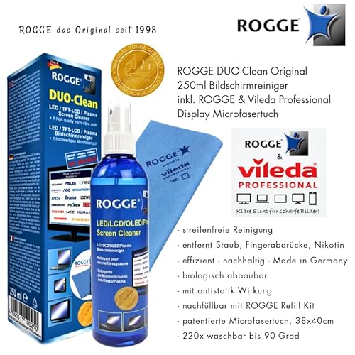 - ROGGE LED/LCD/TFT SCREEN Cleaner inkl. ROGGE Prof. Microfiber Cloth, without alcohol