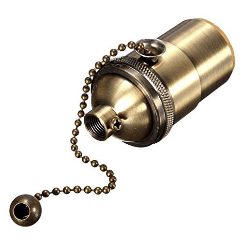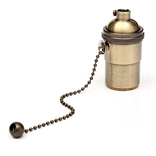 ROHSCE - Portalampada a sospensione in rame, stile vintage, stile vintage, stile vintage, stile vintage, con attacco a vite, con catena a tirare, in bronzo E27 [classe energetica A ++]
