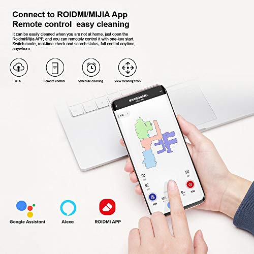 Comoda app e controllo vocale: il robot aspirapolvere Roidmi Eve Plus può essere controllato da App (ROIDMI) e Alexa e Google Assistant. La mappa e lo stato della batteria possono essere visualizzati chiaramente sull'app e puoi impostare il limite virtuale, programmare il piano di pulizia, regolare la potenza di aspirazione e scegliere le modalità di pulizia nell'app. Quando non si desidera utilizzare l'App o il telecomando, è possibile dare i comandi vocali del robot aspirapolvere e il robot aspirapolvere reagirà di conseguenza.