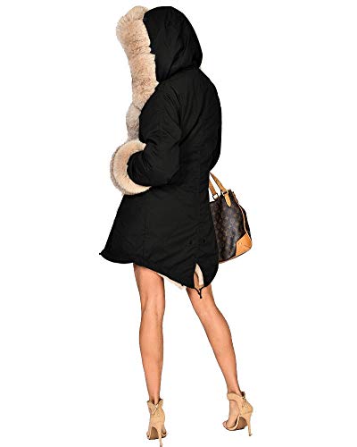 Roiii - Giaccone invernale da donna con cappuccio in pelliccia sintetica, Casual/Elegante, taglie 40-52 EU. Nero 46
