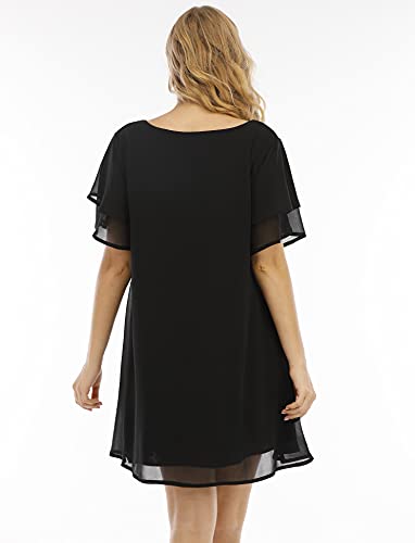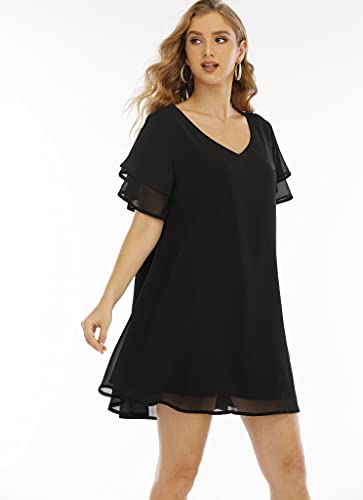 Roiii Mini-abito da donna con spalle scoperte, scollo a V, a trapezio, senza spalline, vestibilità ampia, casual, taglie forti Black 8