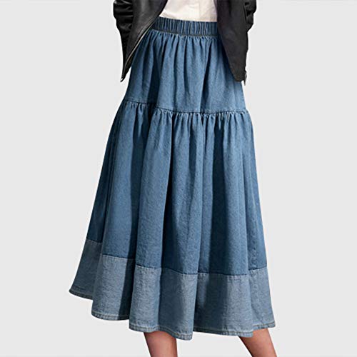 ROirEMJ Gonne da Donna,Primavera Estate Mid-Length Casual Cotone Jeans Gonna Donna A Vita Alta Plissettata Gonne in Denim Donna per Donna Gonna Femminile Svasata, Blu