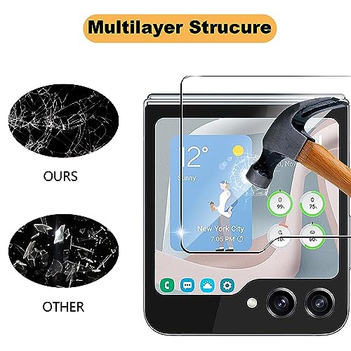 【Modello compatibile】 Protezione schermo in vetro temperato appositamente progettata per Samsung Galaxy Z Flip 5 5G, copertura completa dello schermo, protezione completa.