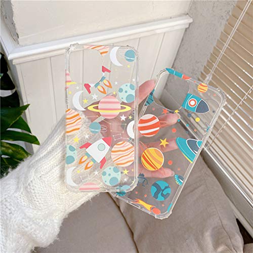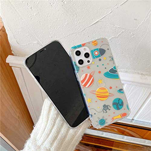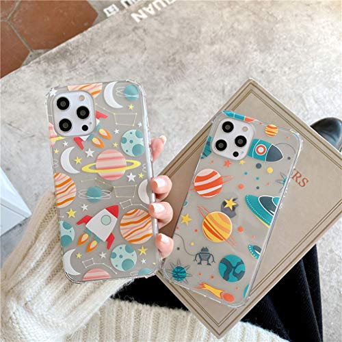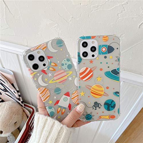 Rokmym - Custodia protettiva per iPhone 11 Pro, in silicone trasparente, motivo: pianeti astronauti, anti-urto, antigraffio, ultra sottile