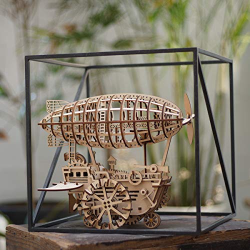 ROKR Laser Cutting 3D Puzzle in Legno Modello di Locomotiva Artigianale con Ingranaggi Meccanici: i Migliori Giocattoli per Ragazzi e Ragazze (Air Vehicle)