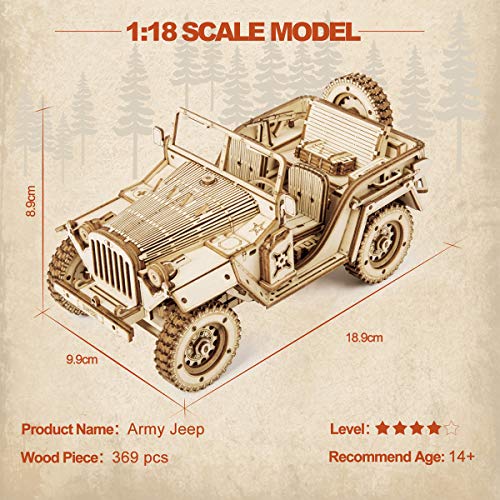 ROKR Modello di Auto in Legno 3D - Car Modellino Meccanico in Legno - Modellini da Construire - Regali per Bambini e Adulti (Army Jeep)