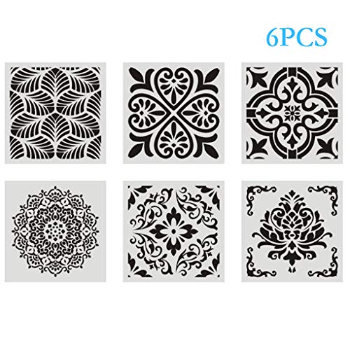 Rolin Roly 6 Pezzi Mandala Riutilizzabile Stencil Modelli Pittura Mandala Non Tossici Pittura per Pareti Fai da Te Painting Templates Mandala Stencil