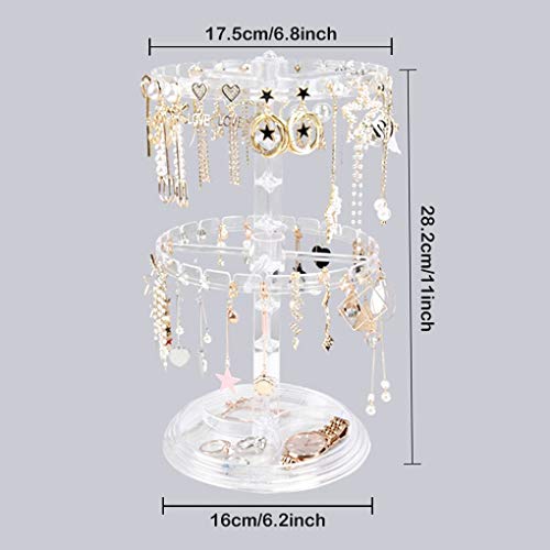 ◆ELEGANTE DESIGN STILE: Espositore per orecchini elegante e alla moda, che consente di organizzare orecchini, semplice colore trasparente complessivo, due strati di anelli pendenti girevoli;