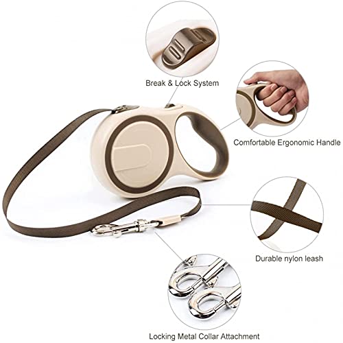 Roll Leash Guinzaglio per Cani Guinzaglio Retrattile per Cani One Button Break & Lock per Cintura di Sicurezza Fino a 3/5 Metri per Cani Fino a 10-30 kg (Color: Brown, Size: 5m)