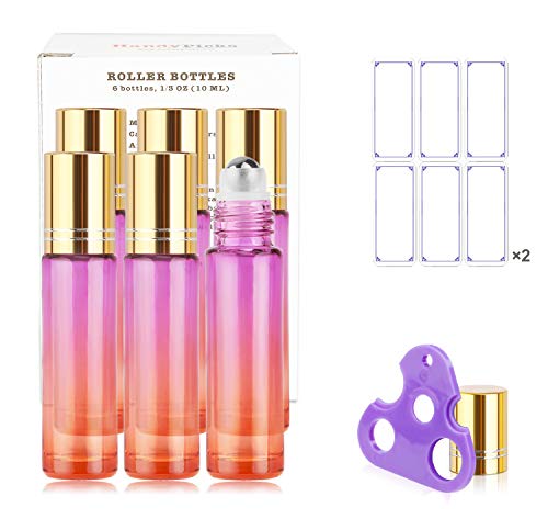Roll On Vuoto per Oli Essenziali, Profumi, 10ml (Colore del Tramonto, 6 Pezzi) - Sfera in Acciaio Inossidabile, Confezione Individuale per Ogni Bottiglietta, Include Etichette Adesive e un Accessorio Apribottiglie, HandyPicks