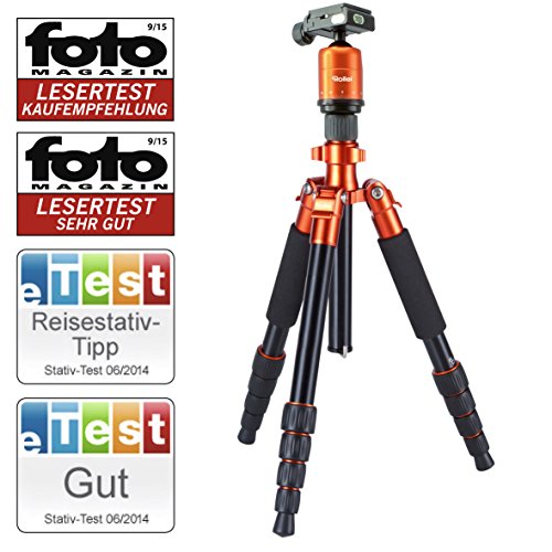 Treppiede in alluminio molto leggero con un peso di portata di soli 1170 grammo - testa a sfera in alluminio panoramica stabile inclusa con piastra a sgancio rapido per la fotocamera