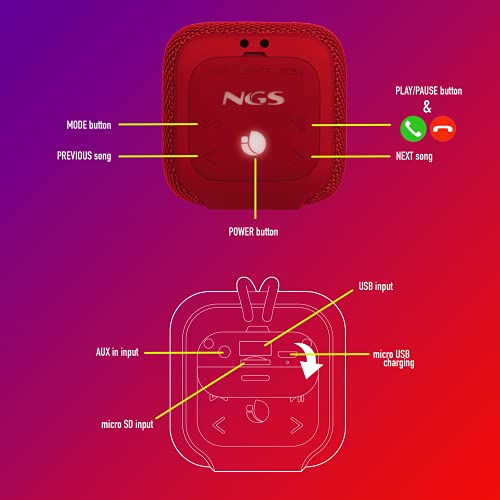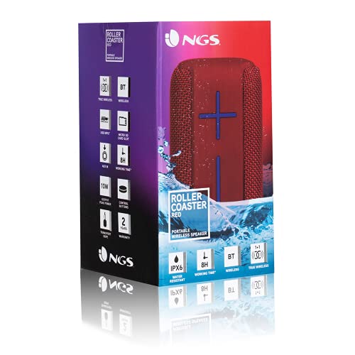 NG ROLLER COASTER RED - Altoparlante Bluetooth Portatile 10W Resistente all'Acqua Waterproof IPX6, con Batteria Ricaricabile e Ingresso USB/Micro SD/AUX IN, Rosso