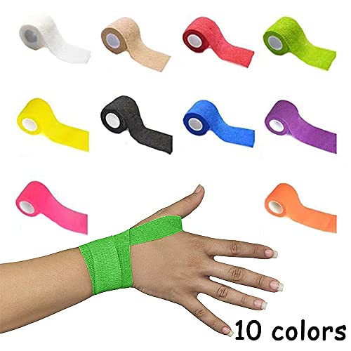 10 Rollos Benda Elastica Coesiva, Autoadesivi per Bendaggi, Garza Elastica, Bendaggio Coesivo, Benda Elastica Coesiva, Bendaggio Coesivo, para Manos, Pies, Rodillas, Brazos (10 Colores)