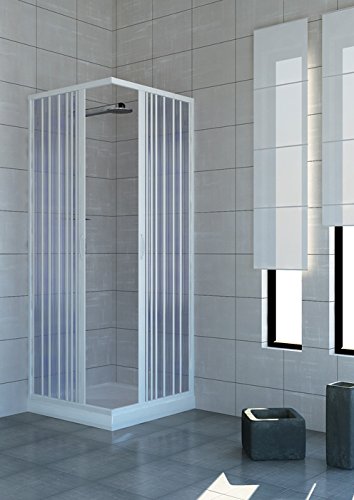 Rollplast BLUN2CONCC28080080 Box Doccia a Soffietto, Dim. 80 x 80 x H 185 cm, in PVC, Lati, Due Ante, con Apertura angolare, Bianco