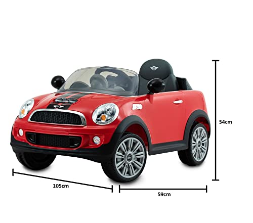 Contenuto: 1 Auto elettrica per bambini, MINI Cooper S Roadster, Telecomando incluso, Batteria alcalina da 6V e caricabatteria, Dimensioni (LxPxA): 105 x 59 x 54,2 cm, Peso: 12 kg, Colore: Rosso