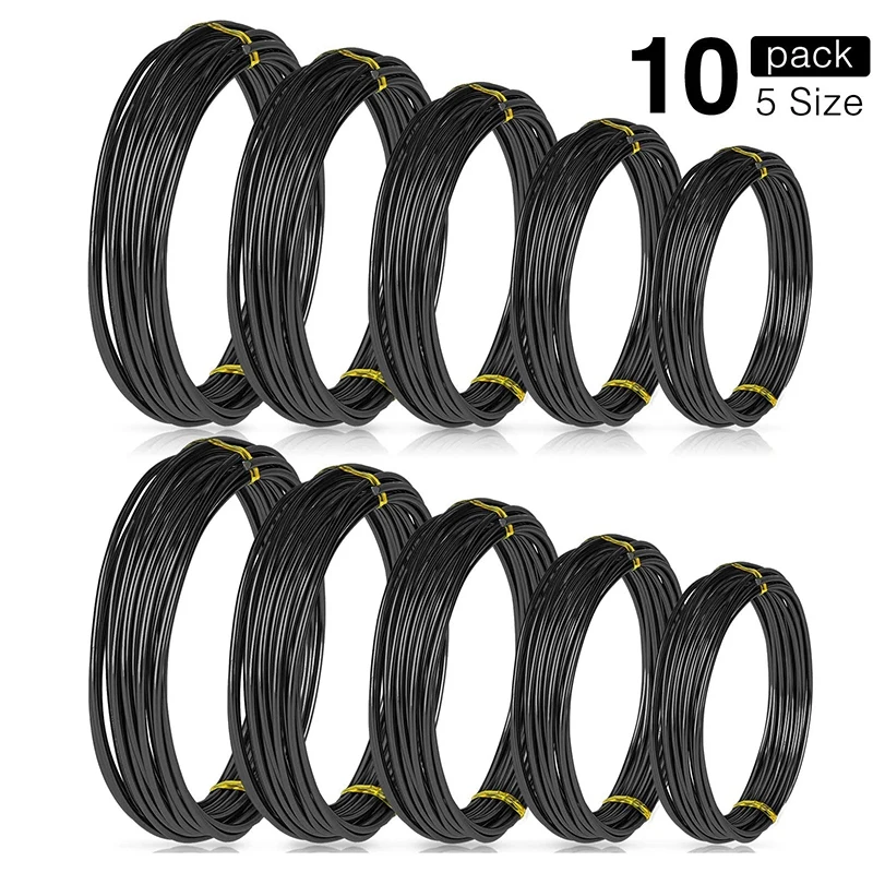 10 Rolls Bonsai Wires Anodized Aluminum Bonsai Training Wire in 5 Sizes - 1.0 mm, 1.5 mm, 2.0 mm, 2.5 mm, 3.0 mm Black