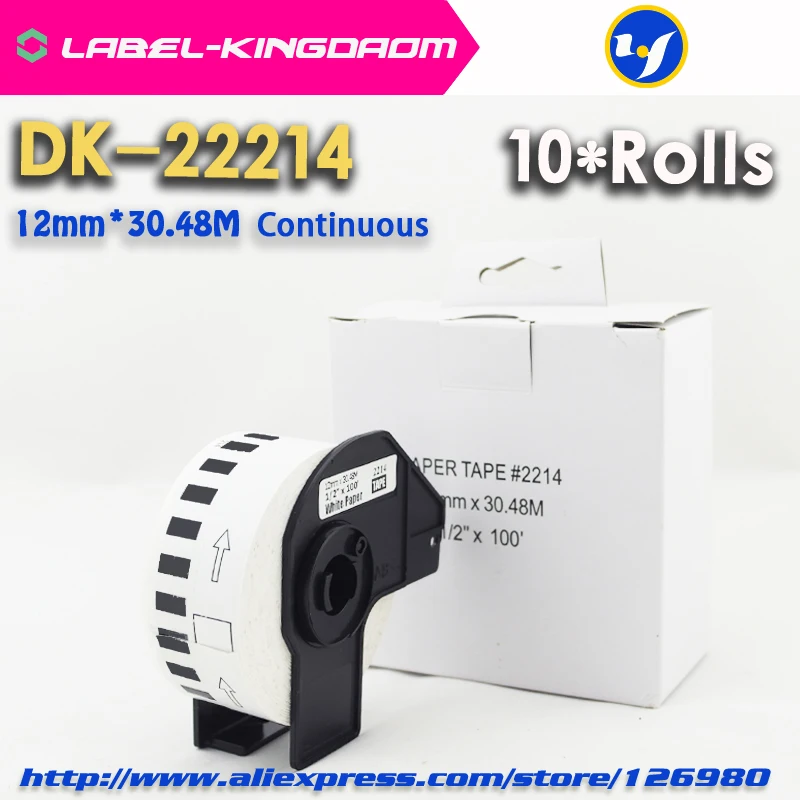 10 Rolls Generic DK-22214 Label 12mm*30.48M Continuous Compatible for Brother Printer QL-570/700 All Include Plastic Holder