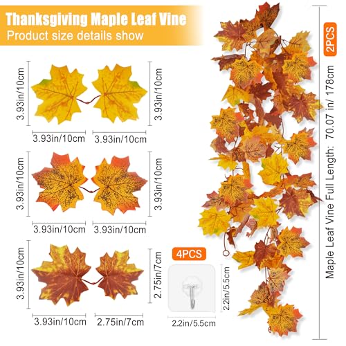 Dimensioni: la dimensione delle ghirlande di foglie d'acero autunnali artificiali da appendere è di 178 cm.La ghirlanda di foglie d'acero è facile da riporre, devi solo piegarla.