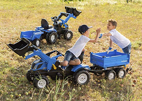 ROLLY TOYS rollyTrac 611270-Trattore da Tavolo New Holland per Bambini da 3 a 8 Anni, Pneumatici, Sedile Regolabile, Colore Blu/Nero, 142 x 81 x 53 cm, 611270