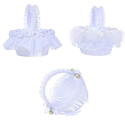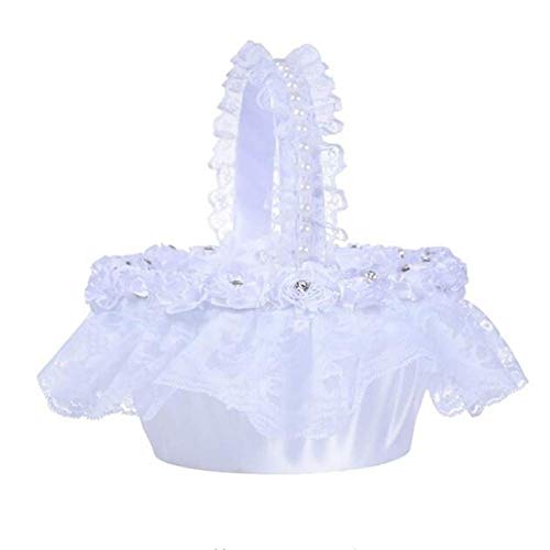 Romantico Fiore Nozze Cesto, Raso Pizzo Fiocco Design Strass Bambina Cestini Damigella Cestello per Cerimonia Matrimonio Decorazione Festa Portaoggetti da Parete Oggetti di Scena - Bianco - B