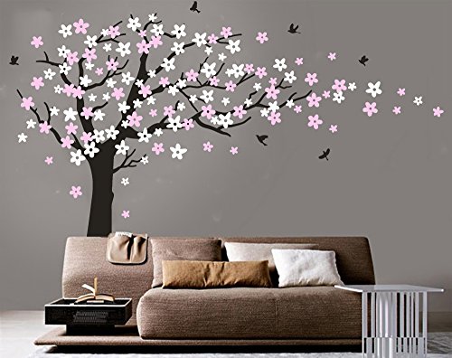 Romantico Rosa Adesivi Murali,Albero Adesivi da Parete,Camera Dei Bambini Vivai Adesivi da Parete Removibili/Stickers Murali/Decorazione Murale (nero)