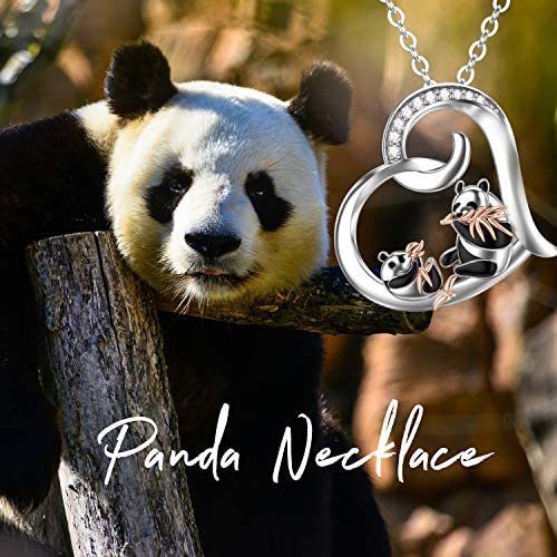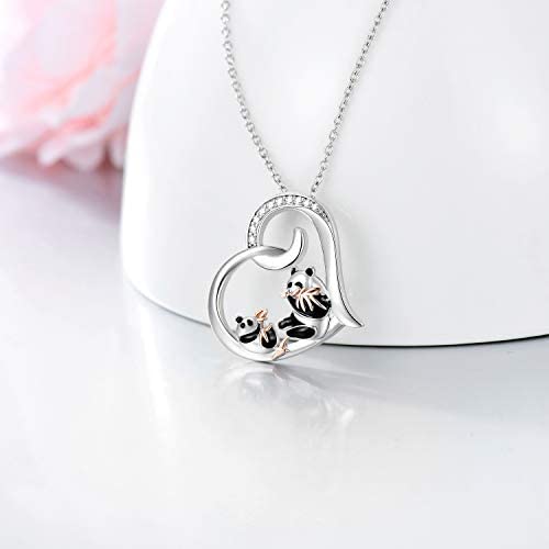 ROMANTICWORK Collana Panda in Argento Sterling Gioielli con Ciondolo a Forma di Cuore di Panda Mamma Regali per Donne Ragazze Figlia
