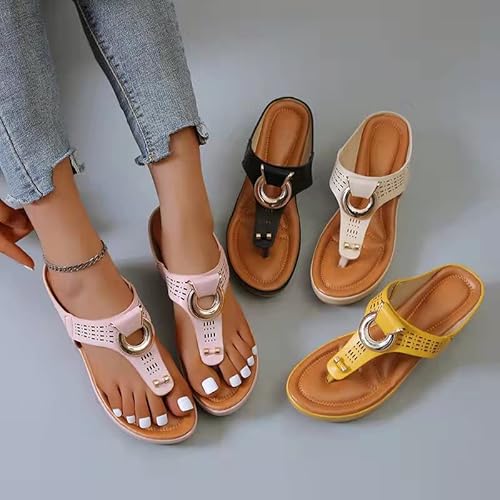 Rome Summer Women Flip Flops Wedges Thick Slippers Flip Flops for Women Summer (36,Apricot)
