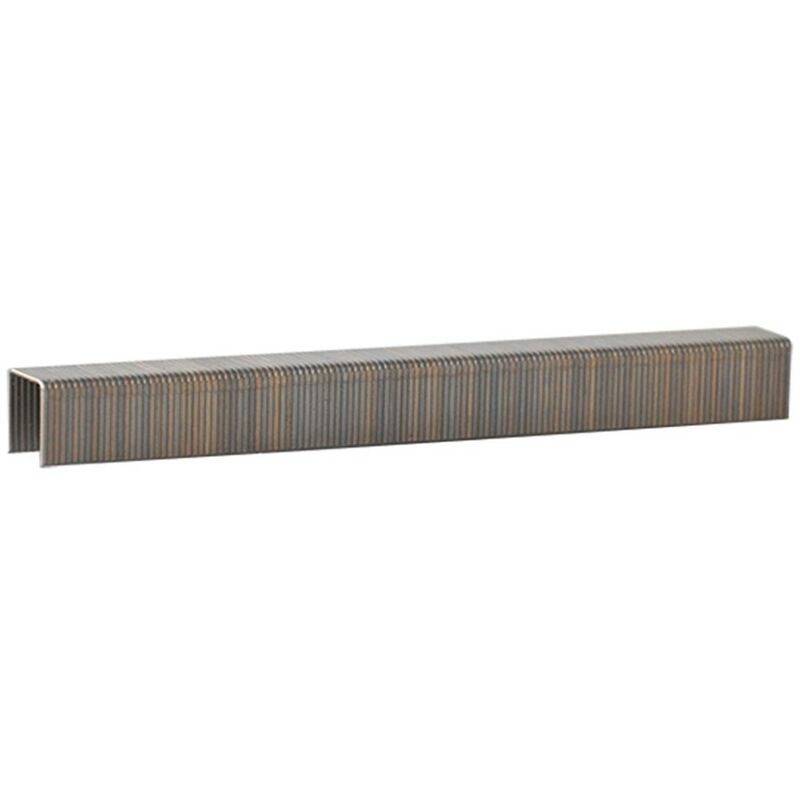A finitura bronzata. Per lavori di teppezzeria murale, ricopertura di poltrone e divani, decorazione ed installazione di isolamenti termici ed acustici. Larghezza fissaggio mm. 13, Ø mm. 0,65x0,95. Adatti per fissatrice pneumatica RO-MA 8016.. mod. 80/16 - cf. 10000 pz. Prezzo inteso per: 1 CF