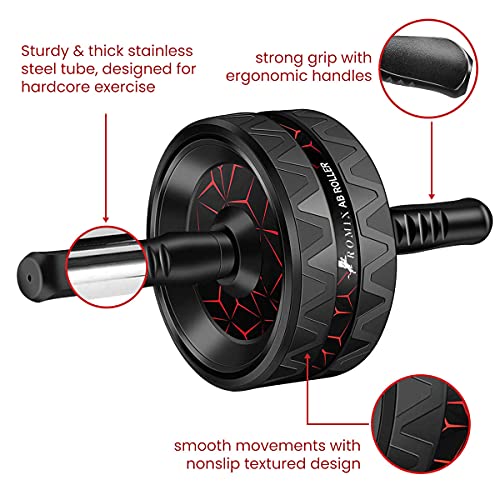 ROMIX AB Roller, Professionale Ruota per Addominali con Supporto per Le Ginocchi Tappetino Uomini Donne, Addominale AB Wheel Trainer Muscolare Perfett per Palestra Casa Esercizio Fitness Allenamento