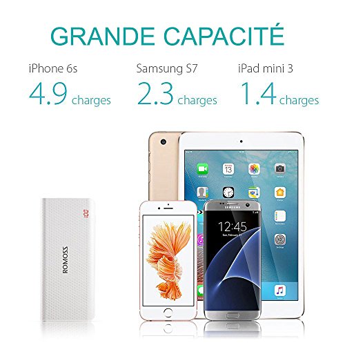 ROMOSS Batteria di Emergenza 10400 mAh 2 Porte USB con Display LED per Smartphone/Tablet/Oggetto collegato Bianco