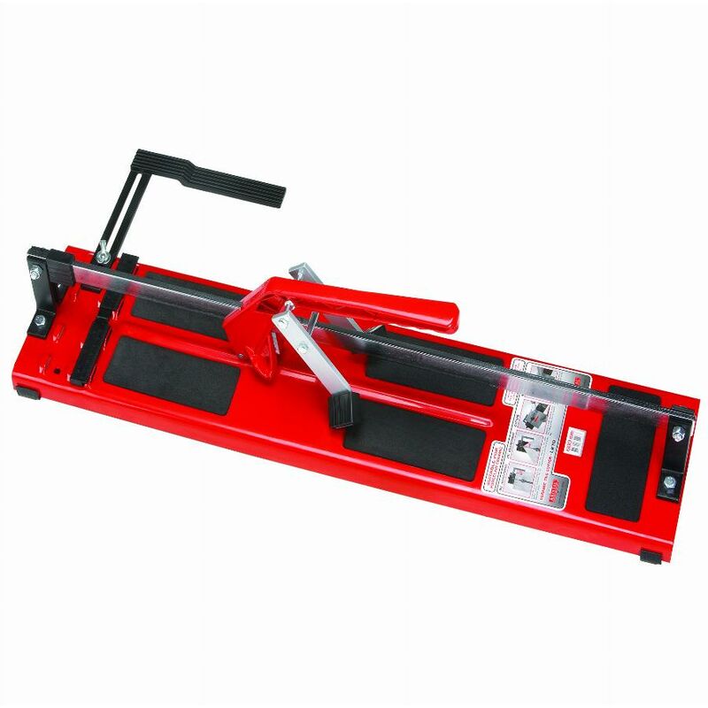 Dettagli: Tagliapiastrelle, lunghezza di taglio 600 mm Testa di taglio scorrevole su una guida verticale in acciaio piatto da 25 x 8 mm Base in acciaio rinforzato di 3 mm di spessore Doppio sistema di rottura Progettata per il taglio di piastrelle per pareti e pavimenti fino a 20 mm di spessore.