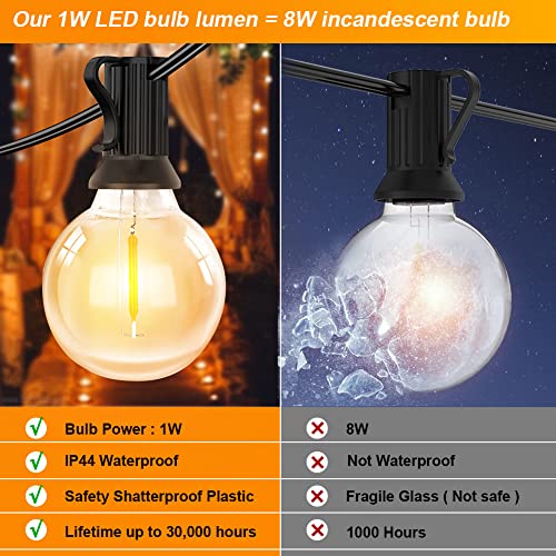 【IP44 Impermeabile Catena Luminosa】: Lampadine LED esterno sono realizzate in plastica resistente, molto più sicura e durevole delle tradizionali lampadine in vetro, che non si romperanno in caso di caduta. Catena luminosa da esterno sotto le estati torride, inverni freddi, sole, vento, pioggia, neve e umidità.