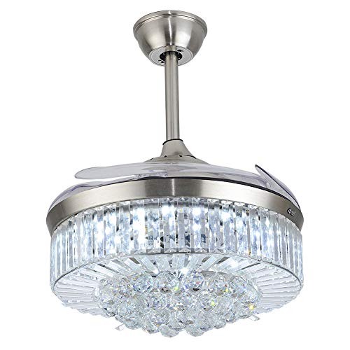 Ce ventilateur de plafond moderne avec des lumières est une combinaison de ventilateur de plafond et de lustre en cristal
