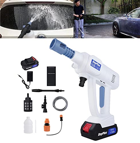 Rondella ad alta pressione a batteria con 1 batteria da 21 V, 1,3 Ah, 25 bar, idropulitrice portatile con ugello multiuso, lancia lunga, tubo da 5 m, per la pulizia di auto, giardino, finestre