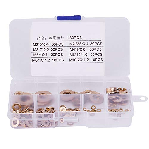 Rondella in ottone 180 pezzi con scatola M2/M2.5/M3/M4/M5/M6/M8/M10, kit rondella rondella piatta Kit rondella piatta